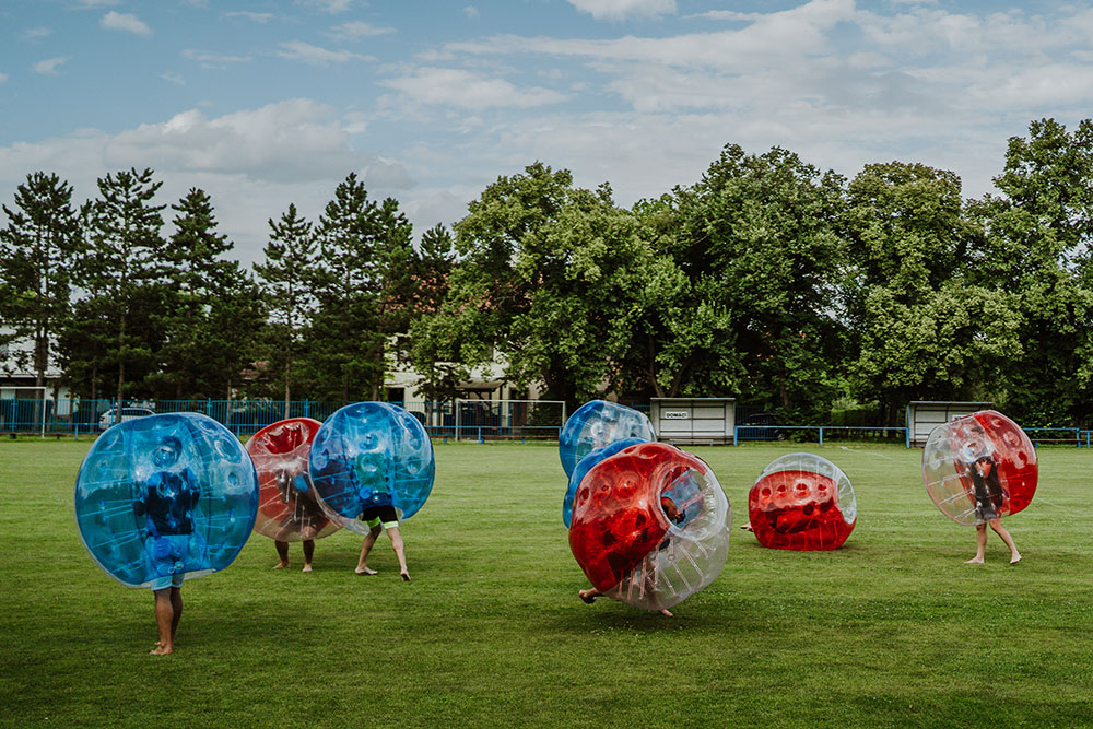 The party idea: You're strapped into oversized air-filled bubbles, you sprint, bump into each other, roll across the field, and try to get the ball into the opposing goal at the same time. Sounds tricky? Maybe. Is it hilarious? Absolutely! Because here, bumping, bouncing, and knocking others over is part of the game.